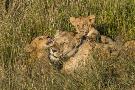 Africa, Kenya, Masai Mara National Reserve. African Lion female with cubs.
