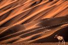 Africa, Namibia, Namib-Naukluft National Park, Sossusvlei. Oryx beside large sand dune.