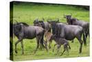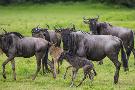 Africa. Tanzania. Wildebeest birthing during the Migration, Serengeti National Park.