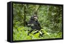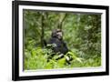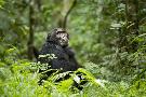Africa, Uganda, Kibale National Park. A wet male chimpanzee looks over his shoulder.