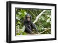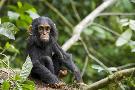 Africa, Uganda, Kibale National Park. An infant chimpanzee pauses briefly during play.