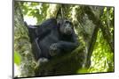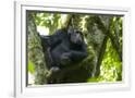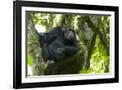 Africa, Uganda, Kibale National Park. Male chimpanzee relaxes in a tree observing his surroundings.