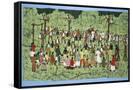 African Batik, Illustrating and Football Match with Spectators Watching Giclee Wall Art