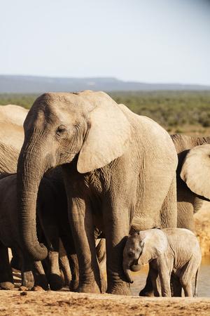 African elephant herd , Addo Elephant Nat'l Park, Eastern Cape, South Africa, Africa