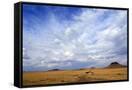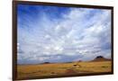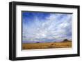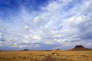 African savanna, golden plains against blue sky with clouds, Masai Mara Game Reserve, Kenya, East A