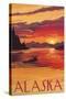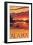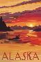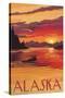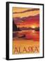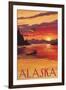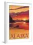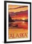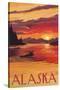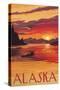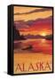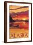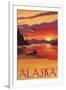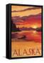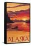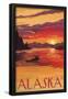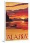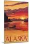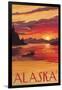 Alaska - Moose Swimming and Sunset Wall Art Print