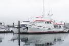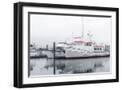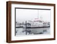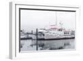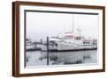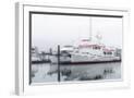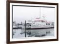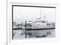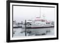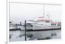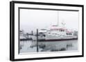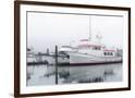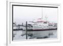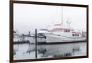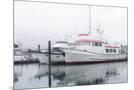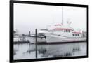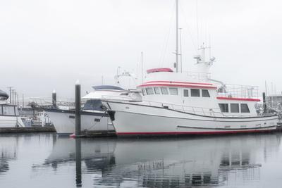 Alaska, Valdez. Two fishing boat in a foggy marina.