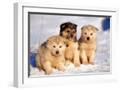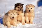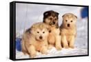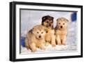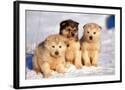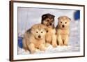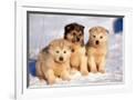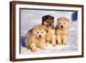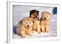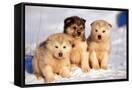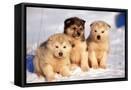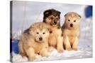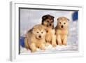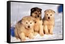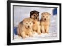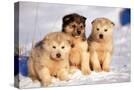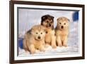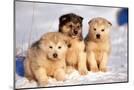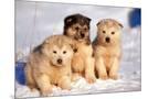 Alaskan Husky Dogs X Three Young Pups Sitting in Snow Photo Print
