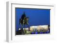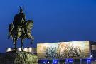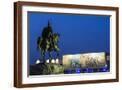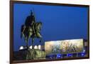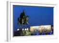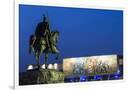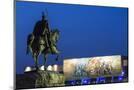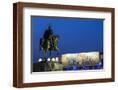 Albania, Tirana, Skanderbeg Square, Statue of Skanderbeg and National Historical Museum, Dusk
