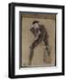 Album cartonné; Académie d'homme nu de dos, penché en avant, le genou droit sur un billot; vers