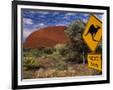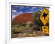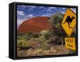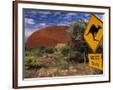 Alice Springs, Traffic Sign Beside Road Through Outback, Red Rocks of Olgas Behind, Australia