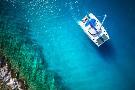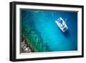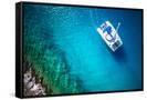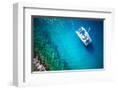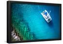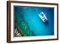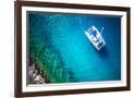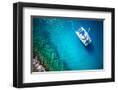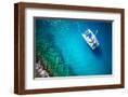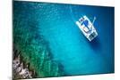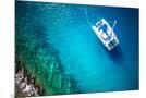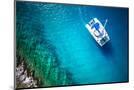 Amazing View to Yacht Sailing in Open Sea at Windy Day. Drone View - Birds Eye Angle Photo Print