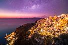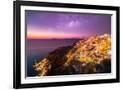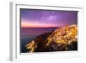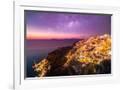 Amazing evening view of Santorini island. Picturesque spring sunset on the famous Fira village, Gre Wall Art Print
