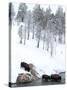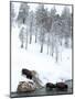American Bison (Bison Bison) Crossing a River in Yellowstone National Park in Winter, UNESCO World