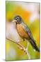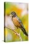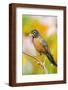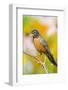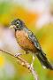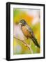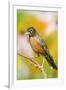 American Robin Perched in Flower Garden, Marion, Illinois, Usa