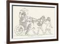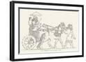 An Assyrian Ruler Rides in His Chariot Drawn by Two Horses with Two Grooms and Two Attendants Wall Art Print