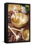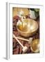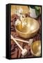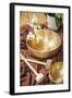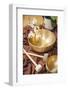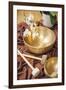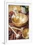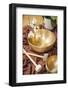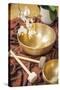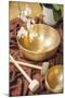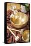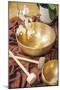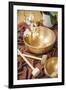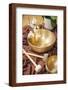 An Image of Some Singing Bowls and a White Orchid Photo Print