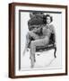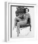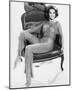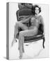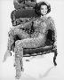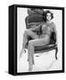 Angie Dickinson. 1967 pose in sequined outfit smiling seated on chair