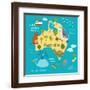 Animals World Map Australia Wall Art Print