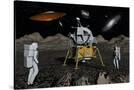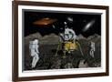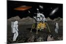 Apollo Astronauts Coming into Contact with an Alien Ufo While on the Moon Wall Art Print