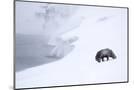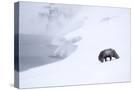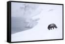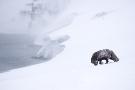 Arctic fox walking on coastal cliffs in snow, Iceland