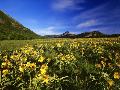 Arrowleaf balsomroot covers the praire, Waterton Lakes National Park, Alberta, Canada