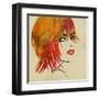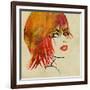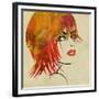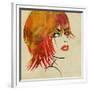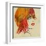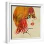 Art Colorful Sketching Beautiful Girl Face On Sepia Background