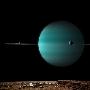 Artist's Depiction of a Ringed Gas Giant Planet Surrounded by it's Moons