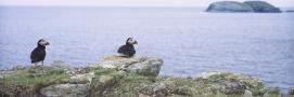 Atlantic Puffins Perching on Rocks, Maberly, Newfoundland and Labrador, Canada (Fratercula Arctic)