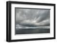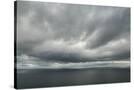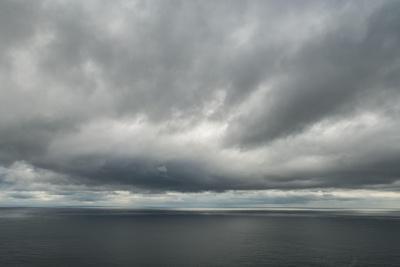 Atlantic ocean water and dramatic cloudy sky background. Sea water texture closeup. Landscape photo Photo Print