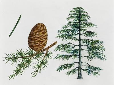 Atlas Cedar (Cedrus Atlantica), Pinaceae, Tree, Leaves and Fruit Giclee Wall Art