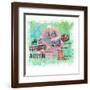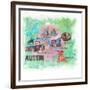 Austin Texas Travel Poster Favorite Map Touristic Highlights Wall Art Print