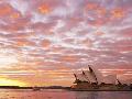 Australia, New South Wales, Sydney, Sydney Opera House, Boat in Harbour at Sunrise
