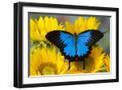 Australian Mountain Blue Swallowtail Butterfly on sunflower