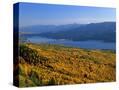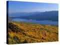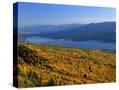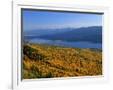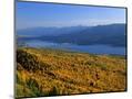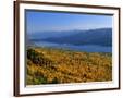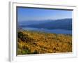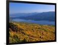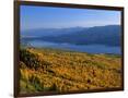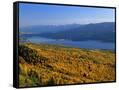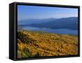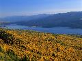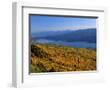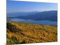 Autumn Larch Trees over Hungry Horse Reservoir, Swan Mts., Hungry Horse Montana, USA