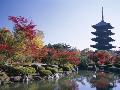 Autumn Leaves and Five-Story Pagoda, Toji Temple (Kyo-O-Gokoku-Ji), Kyoto, Honshu, Japan