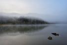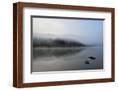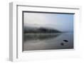 Autumn landscape in the mountains with trees reflecting in the water at St. Ana's lake, Romania Photo Print