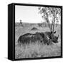 Awesome South Africa Collection Square - Two Rhinoceros sleeping B&W