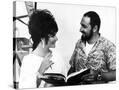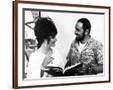 BOOM !, 1968 directed by JOSEPH LOSEY On the set, Elizabeth Taylor and his brother Howard (b/w phot Photo Print