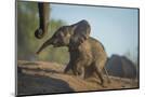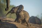 Baby African Elephant (Loxodonta Africana), Climbing Up A Riverbank, Chobe National Park, Botswana