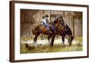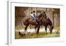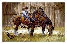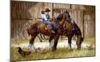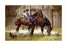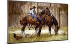 painting, landscape, nostalgic, portraiture, figurative, children, boys, barn, horses, chickens, farm