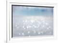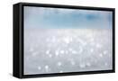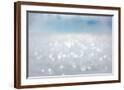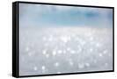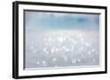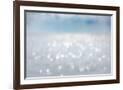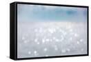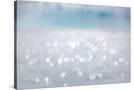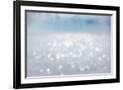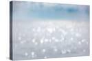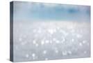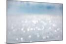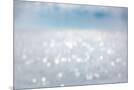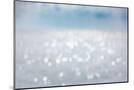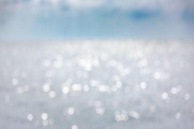 Background of blurred sunset beach and sea waves with bokeh lights. Artistic ocean blur