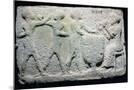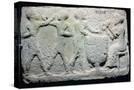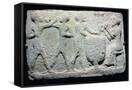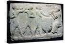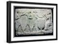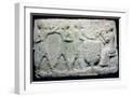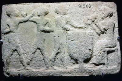 Baked clay plaque of two boxers fighting, while musicians play the drums and clapper, from Larsa, Iraq, 2000BC-1750BC. From the British Museum's collection.