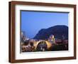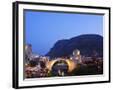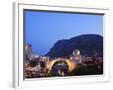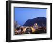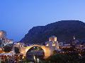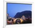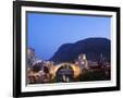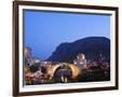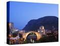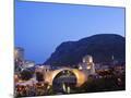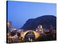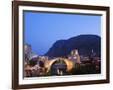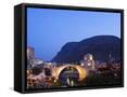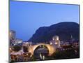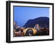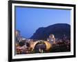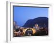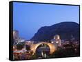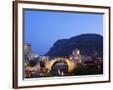 Balkans Bosnia Mostar Stari Most Peace Bridge on Neretva River Lit Up in the Evening