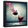 Ballet Dancer In Flying Satin Dress With Umbrella Wall Art Print