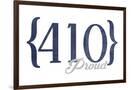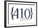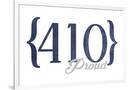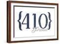Baltimore, Maryland - 410 Area Code (Blue) Wall Art Print