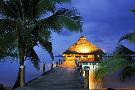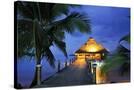 Bar and restaurant on stilts at dusk, Playa Tortuga hotel, Colon Island, Bocas del Toro Archipelago