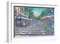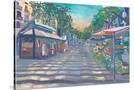 Barcelona Rambla Street Scene With Signpost Wall Art Print