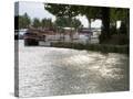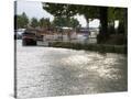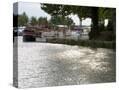 Barge Moored on the Canal Du Midi, Trebes, Aude Languedoc Roussillon, France, Europe