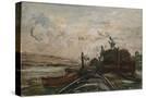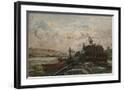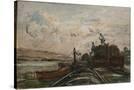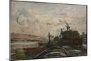 Barges on a River, C.1865 (Oil on Canvas) Giclee Wall Art